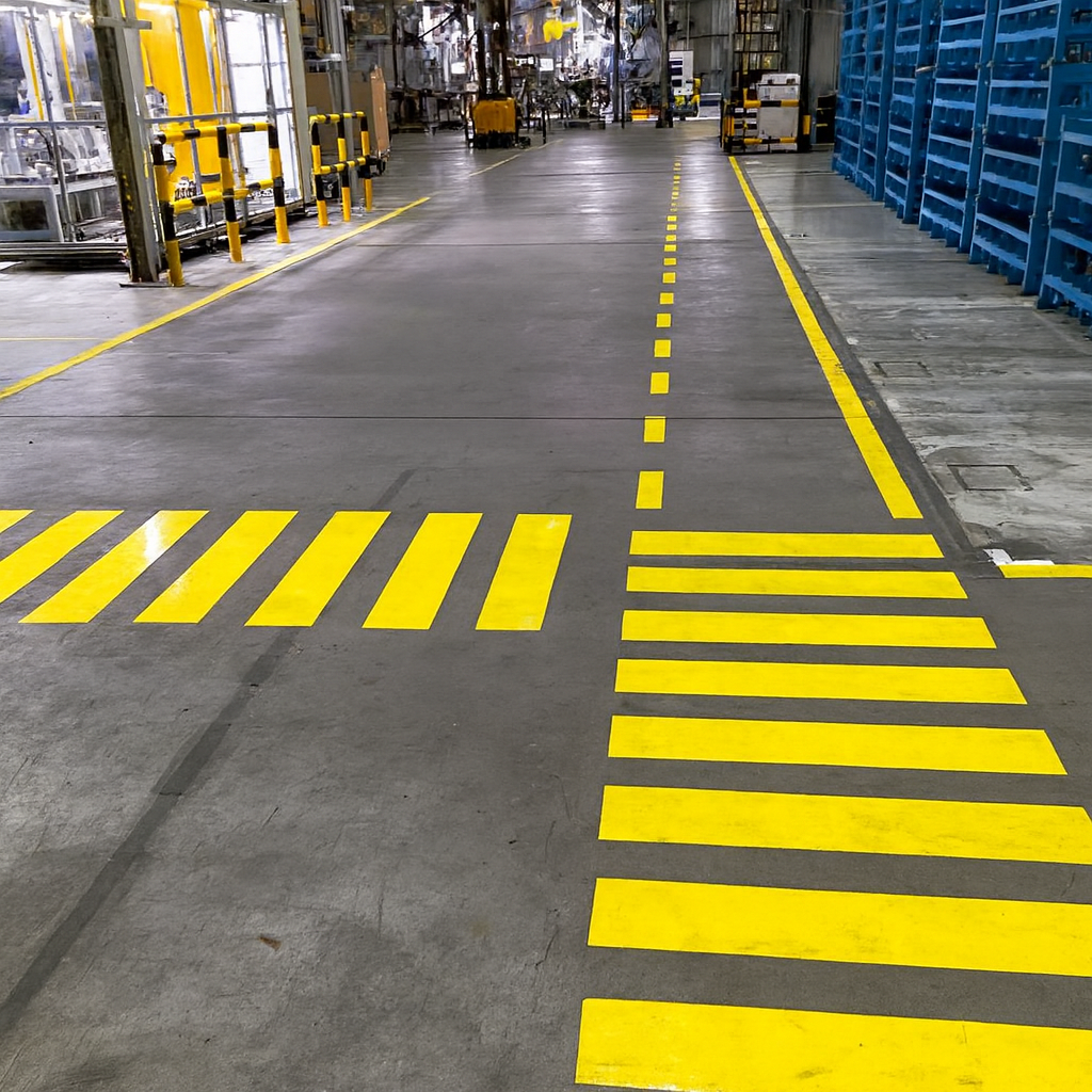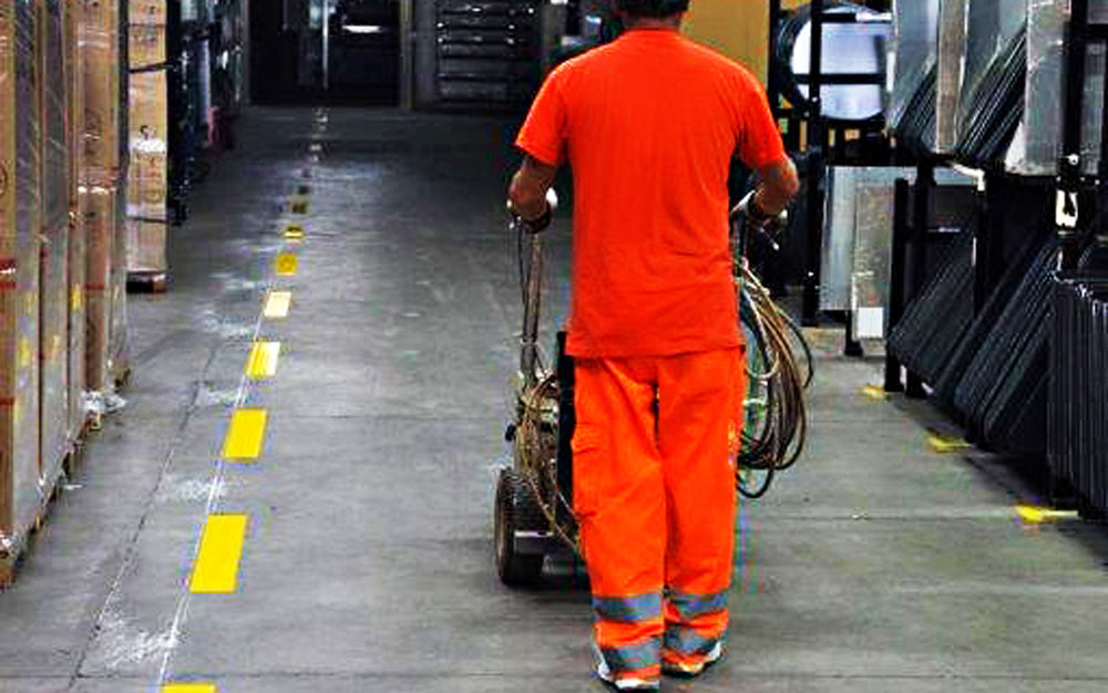 Simos Service realizza segnaletica orizzontale all’interno di capannoni industriali e grandi stabilimenti, che permette di identificare, inequivocabilmente, aree di movimentazione carichi e mezzi, stoccaggio o aree di lavoro, percorsi pedonali, zone vietate o riservate, entrate e uscite.